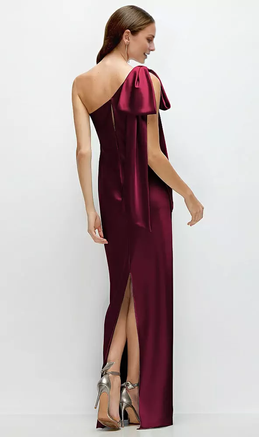 Layered Shoulder Bow One Shoulder Oblique Satin and Floor length Bridesmaid Dress - LD Dress