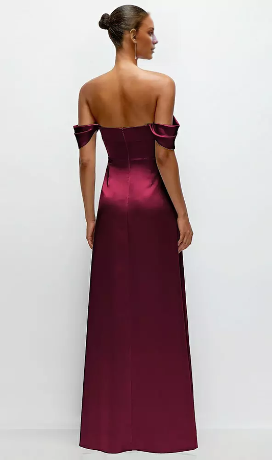 A-line satin off shoulder strapless and floor length bridesmaid dress - LD Dress