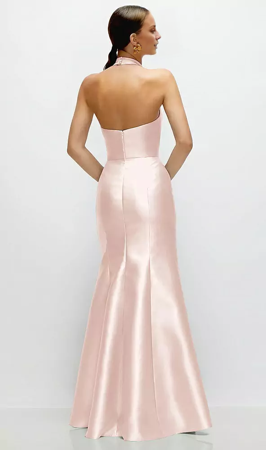 High neck spaghetti strap satin and floor length bridesmaid dress - LD Dress