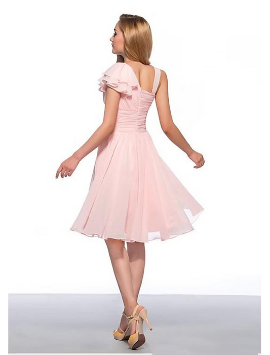 A-Line Empire Elegant Engagement Cocktail Party Dress Jewel Neck Sleeveless Knee Length Chiffon with Ruched