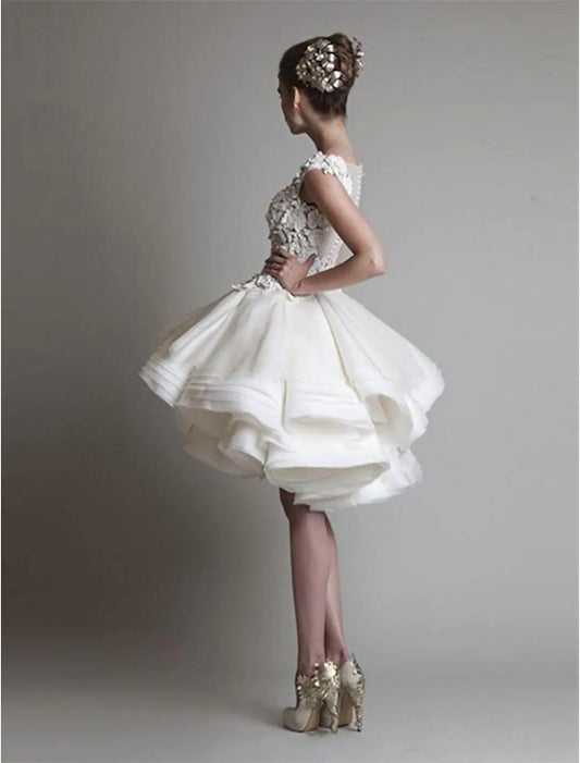 Floral Little White Dresses Puffy Homecoming Cocktail Party Dress Sleeveless Short Mini Tier Shouder Flower