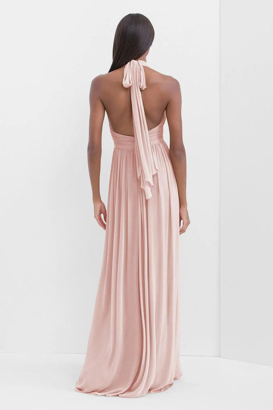Refined A-Line Halter Neck Sleeveless Open-Back Flowy Floor-Length Evening Dress