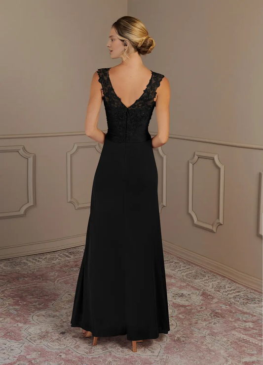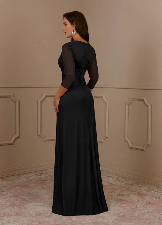 Mermaid V-neck pleated mesh and floor length mother of bride dress