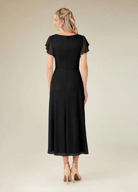 Stormy Sheath Spoon Tea Chiffon Bridal Mother Dress