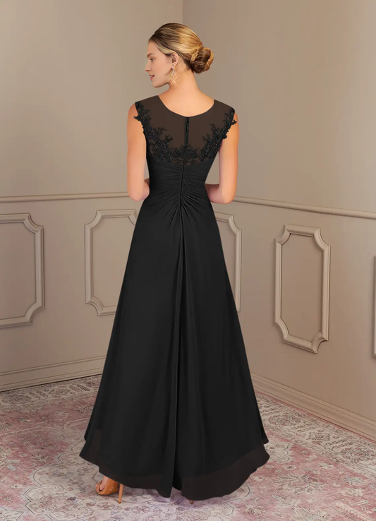 A-line V-neck pleated chiffon and floor length mother of bride dress