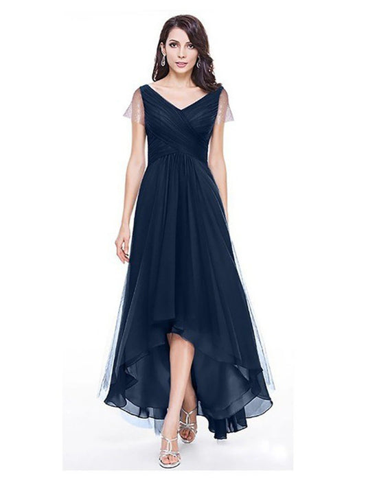 A-Line Bridesmaid Dress V Neck Short Sleeve Elegant Floor Length Chiffon with Split Front / Ruching