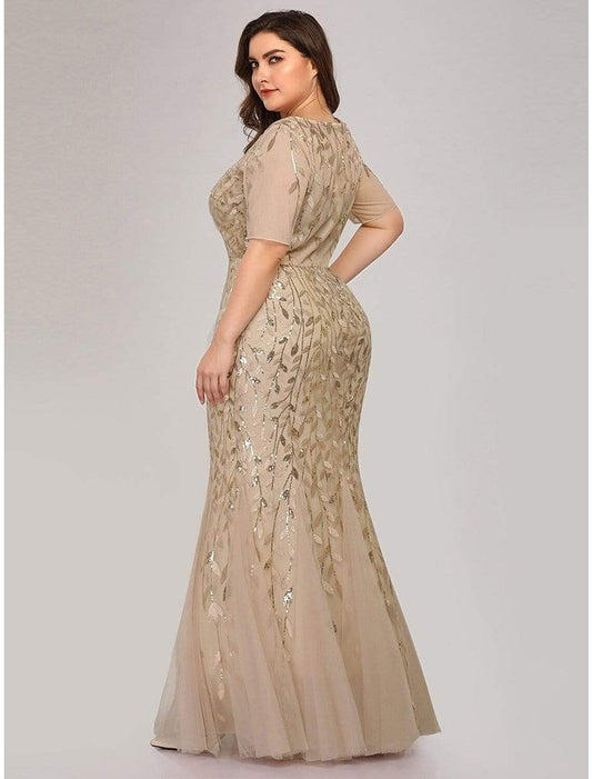 Mermaid / Trumpet Wedding Guest Dresses Plus Size Dress Cocktail Party Floor Length Long Sleeve Scoop Neck Sequined with Glitter