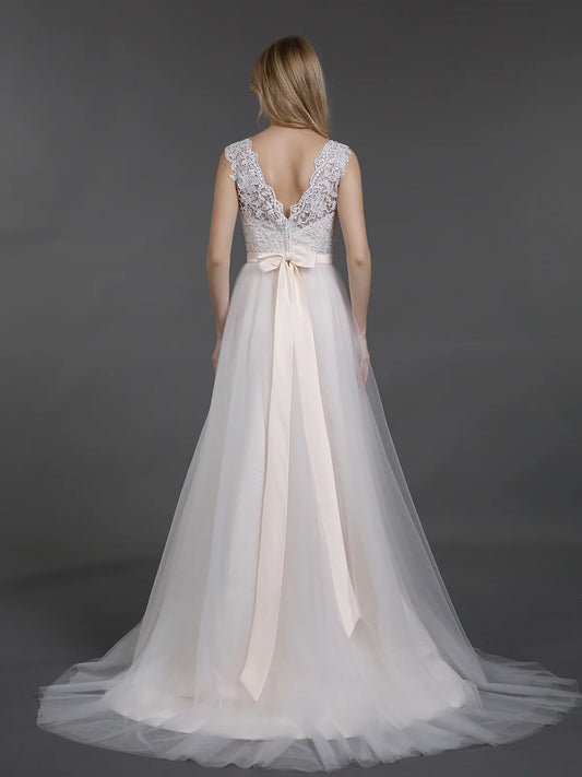 V-neck lace chiffon beach wedding dress