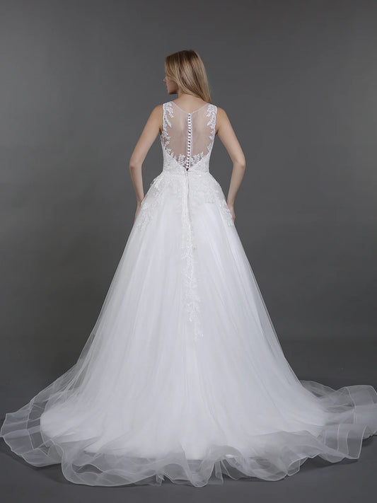 Sheer lace slit sleeveless wedding dress