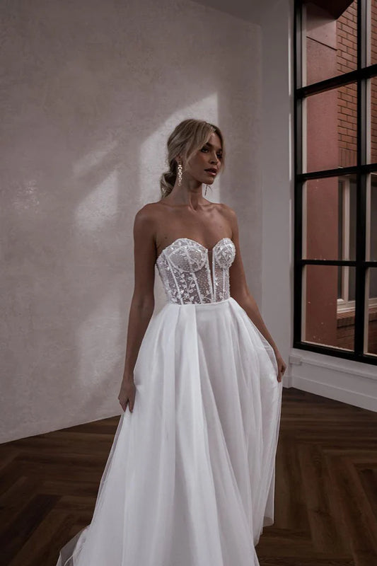 A Line Sweetheart Lace Applique Bohemian Wedding Bridal Dress