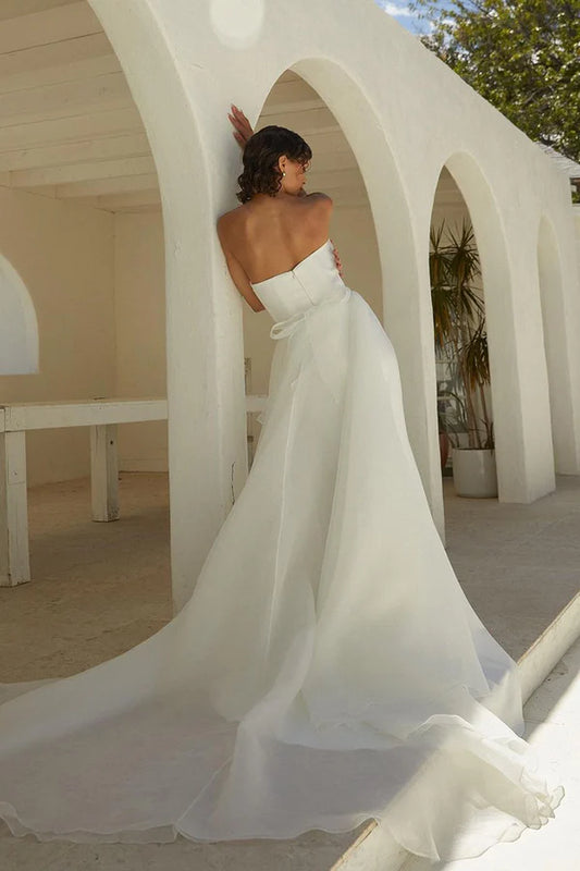 Detachable train without shoulder straps pleated fishtail wedding dress