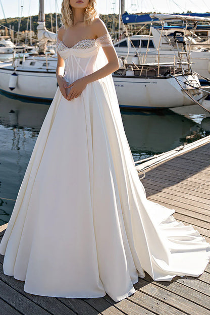A Line Sweetheart Pearl Country Style Wedding Dress