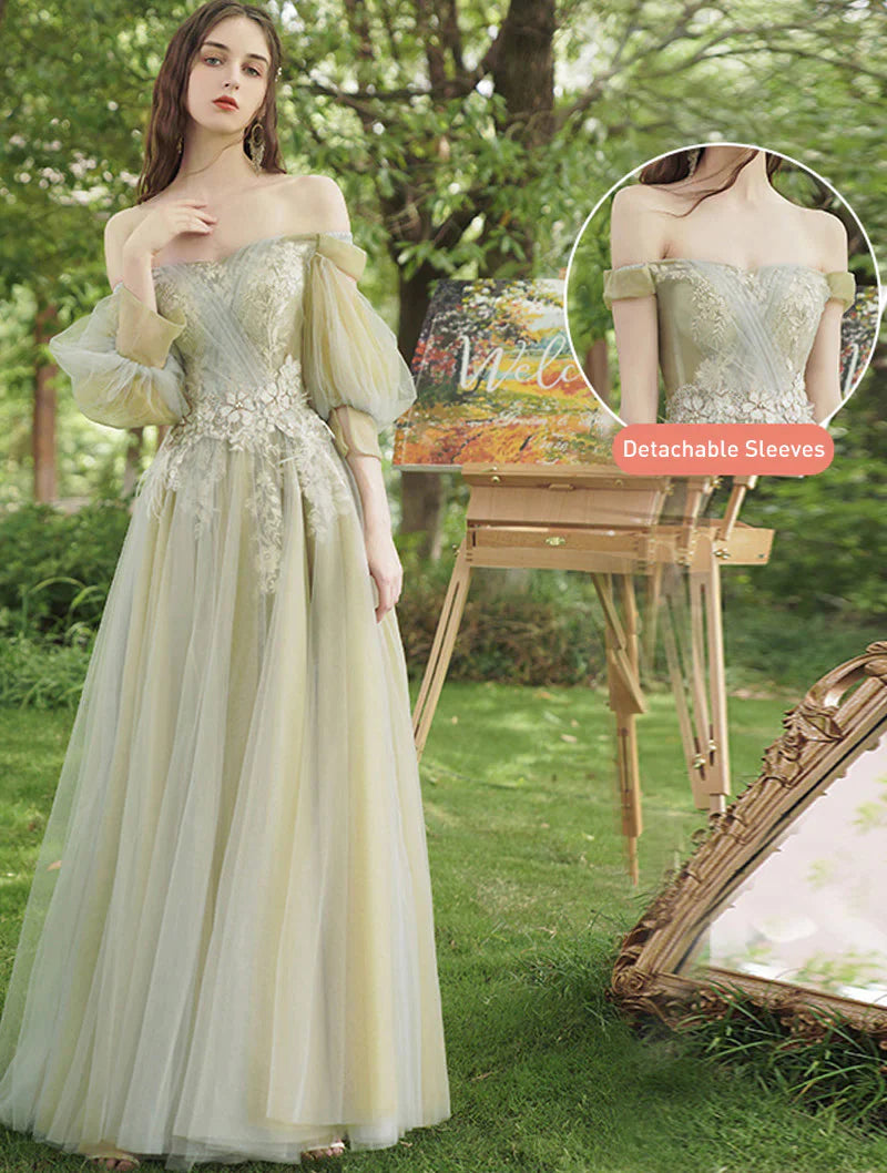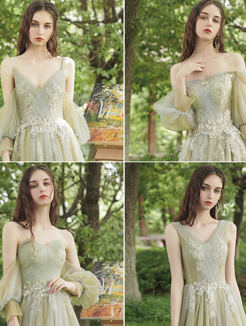 Light Green Fairy Prom Dress Green Color, Green Tulle Long Wedding Party Dress